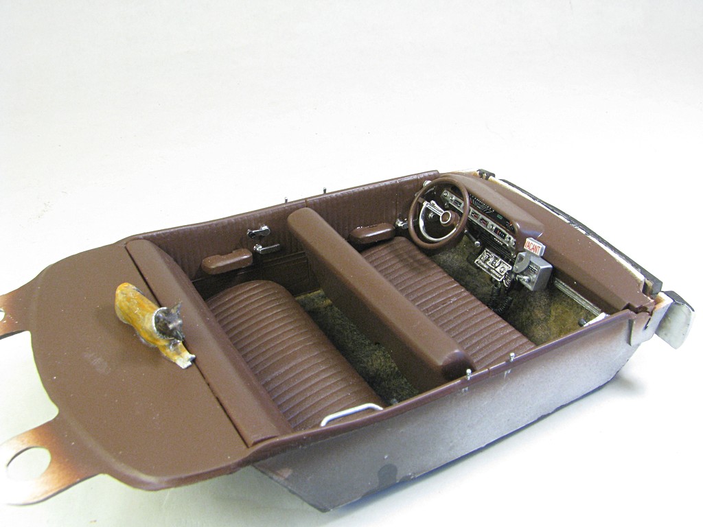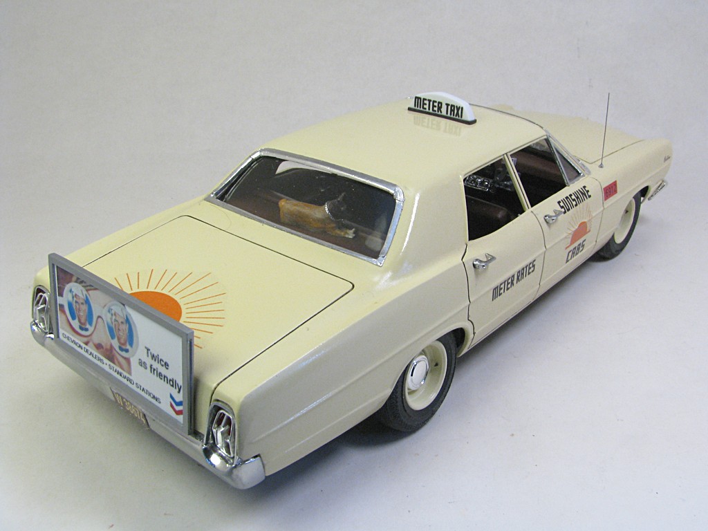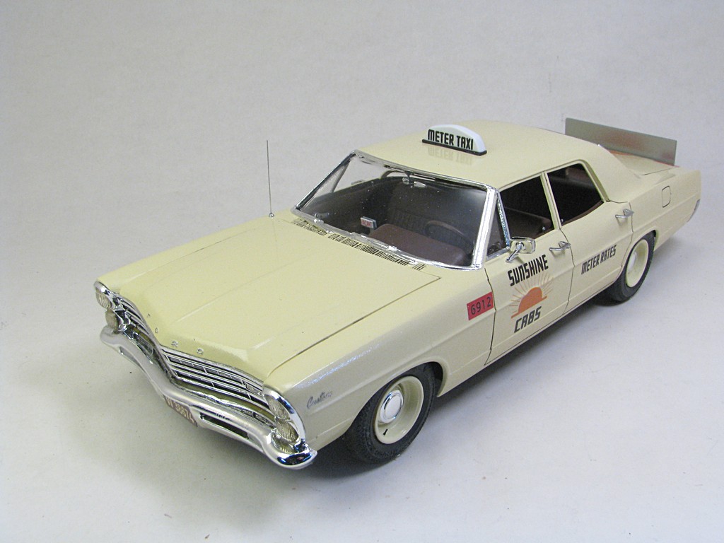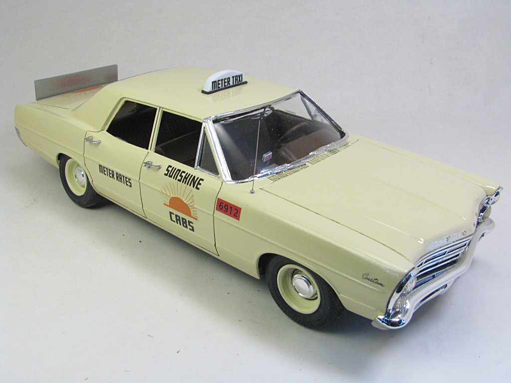 | 1967 Ford Custom 500 taxi (Bullitt movie) This is another addition to the collection of the 'Cars of the movie Bullitt', which was released in 1968. The late Robert Duvall was the taxi driver of this car as he drove Steve McQueen around to various locations in San Francisco. This model grafted the roof of an AMT Ford Interceptor Police Car kit (a 1970 Ford Galaxie 500) onto the body of an AMT Ford Galaxie convertible. The actual car in the movie was a Ford Custom 500, which was sold as fleet vehicles to police departments, taxi compnanies, etc. It differs from the Ford Galaxie in having fewer chrome moldings and a simpler interior. Base Kit(s): AMT 1967 Ford Galaxie (kit number 6117-200) Finished: April 2026 Modifications/Additions: - added roof from Ford Police Car kit and reshaped rear window - rescribed door panel lines to change into a four door - aftermarket window cranks and interior door handles - scratchbult one interior door handle and then resin cast 3 copies - added interior door locks - modified 1:35 scale 3D printed dog for rear window shelf, as per the movie car - BestModelCarParts gauges - added turn signal stalk and gear shifter - scratchbuilt taxi meter with VACANT flag - flocked interior floor - modified police car radio with wound wire for the microphone - modified bench seats from Ford Police car kit - narrowed, headrest and roll pattern removed - custom license plate and bumper sticker to match movie car - rear part of front bumper opened up and running lights added in openeing - headlights from Czech Model Truck Model (https://www.czechtruckmodel.com/) - added radio anttenna - exterior rear view mirror from parts box - scratchbuilt taxi light on roof - exterior door handles from Canuck3D (https://canuck3d.ca/) - photoetch "Custom" script on front quarter panel - scratchbuilt rear advertising sign frame and advertisement taken from billboard photo found on the internet - rear bumper section was removed and strip styrene added to trunk - removed trim on rocker panels - custom printed license plate - all decals from Precision Design Co. (https://www.pdc.ca/rr/catalog) - interior paint is Tamiya acrylic red brown, followed by semi-gloss clear - grill and panel lines have a Tamiya panel line accent black wash - exterior crhome trim is a combination of bare metal foil and Molotow chrome - body paint is Testors Phoenecion yellow, decanted and airbrushed, followed by 1K clear, with some sections polished Click on Thumbnail to see detailed image. These images are 1024 x 768 and maybe a bit slow to load, depending on your connection speed. |